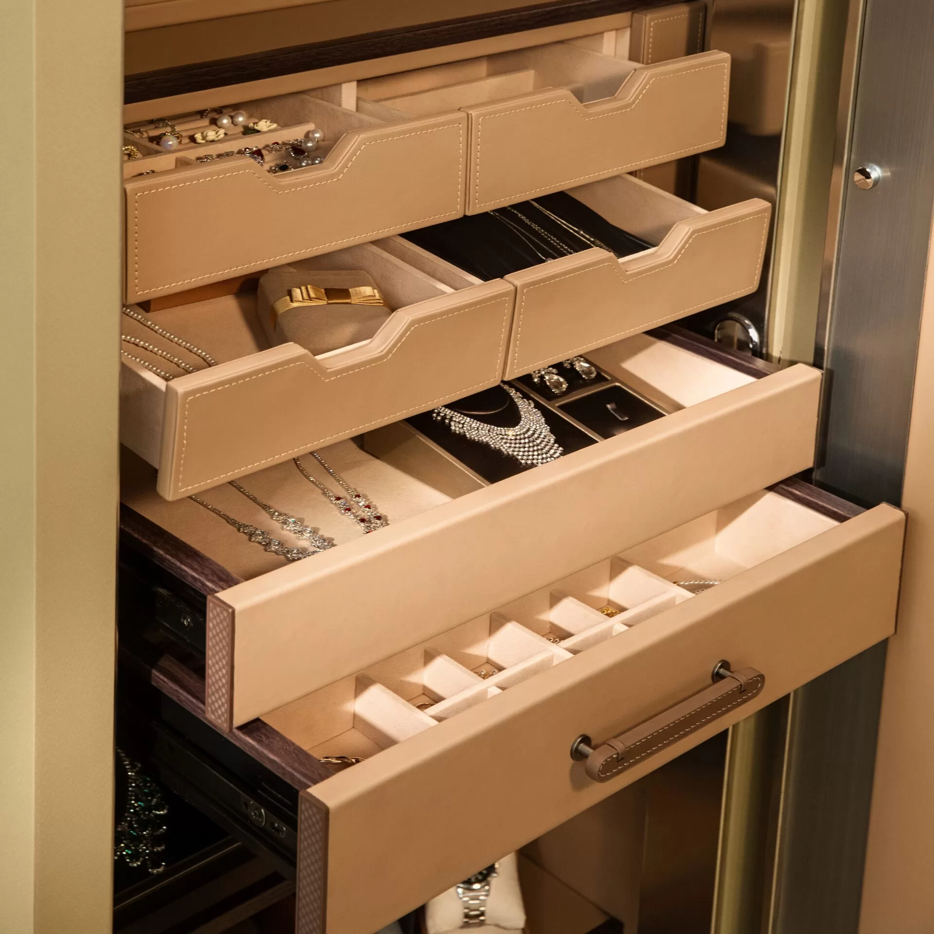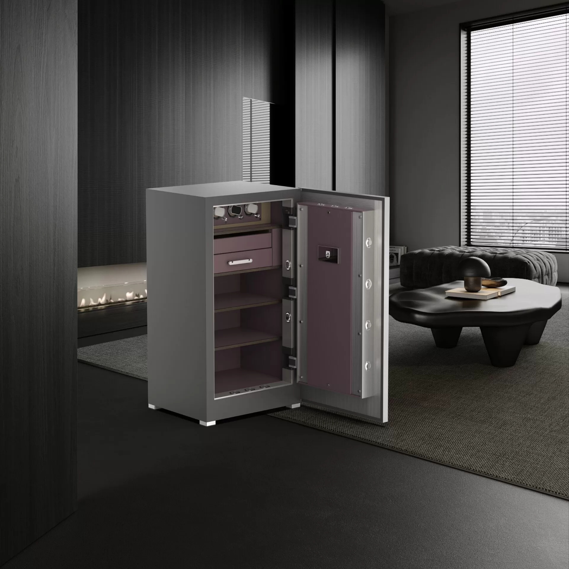 Bên trong Philips Valis, không chỉ là nơi lưu giữ tài sản, mà còn là không gian của sự tinh tế và đẳng cấp. Toàn bộ khoang trong két được bọc da microfiber cao cấp – loại da tổng hợp thế hệ mới thường được sử dụng trong nội thất xe sang và chế tác thủ công cao cấp.